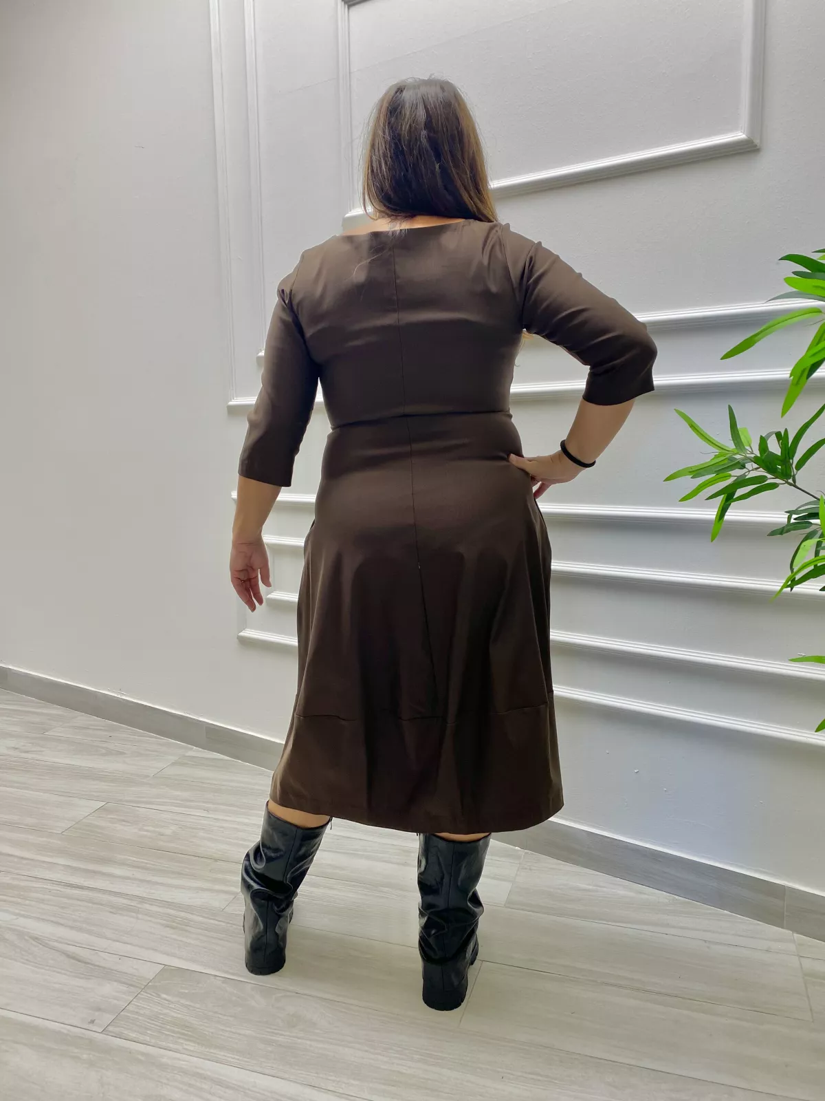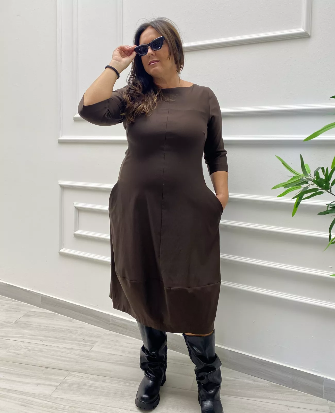 Abito lungo con maniche a 3/4 decorato con cuciture