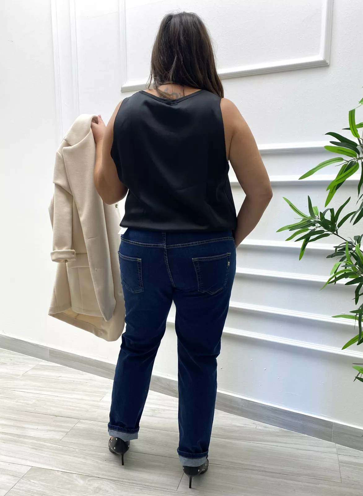 Jeans elasticizzato stretto in gamba con tasche sul davanti e retro