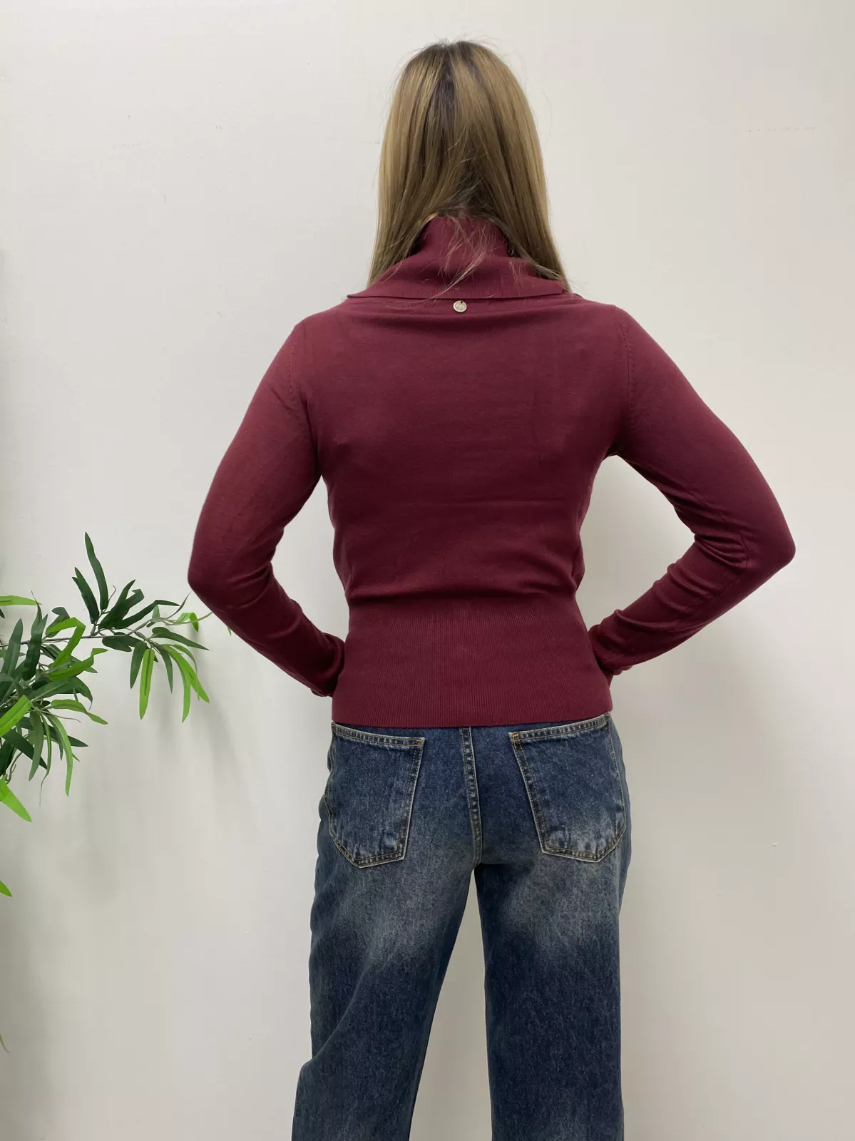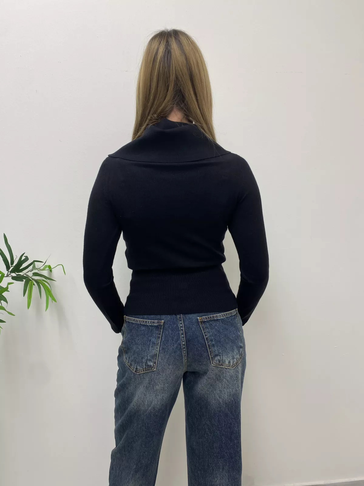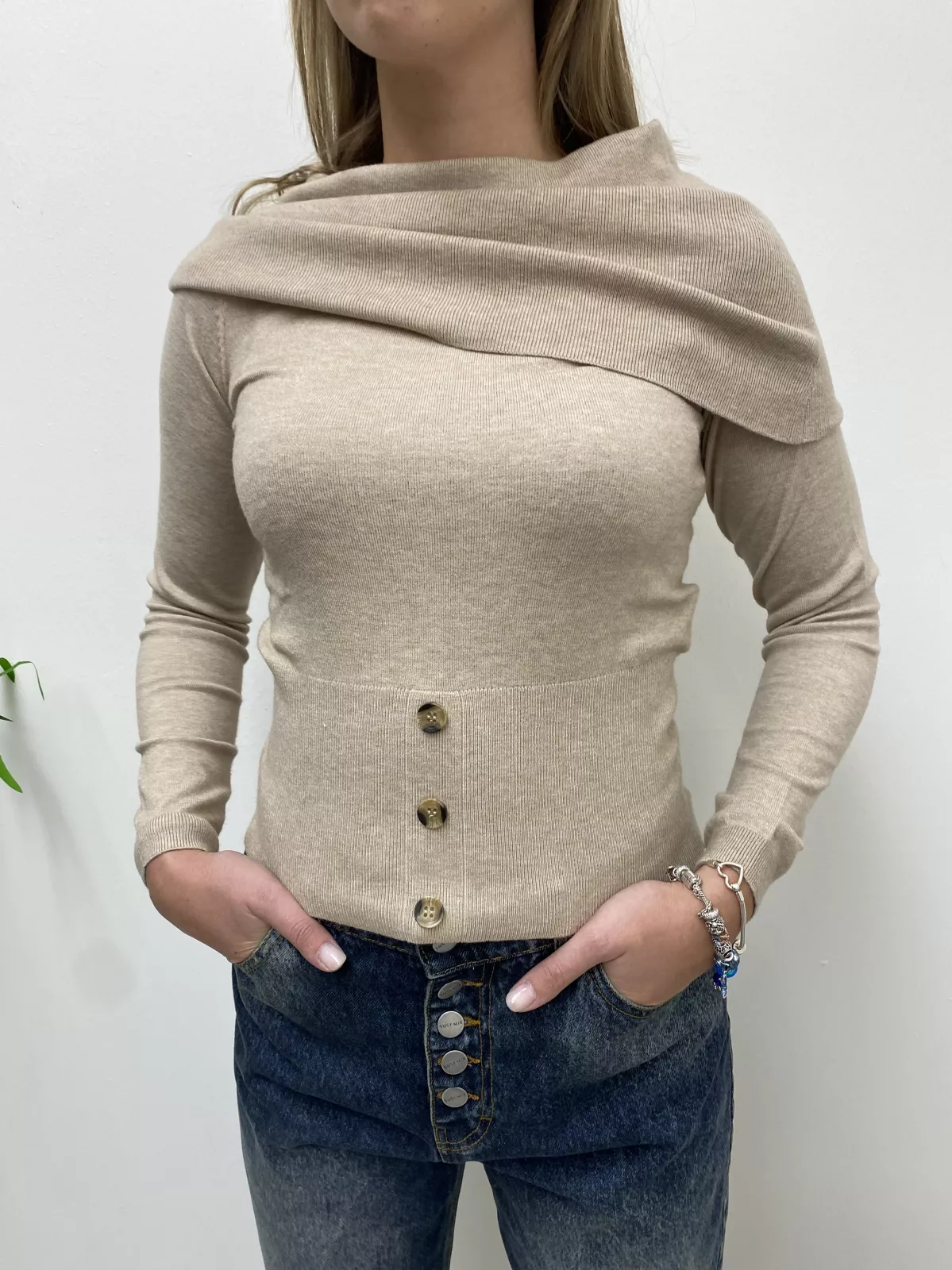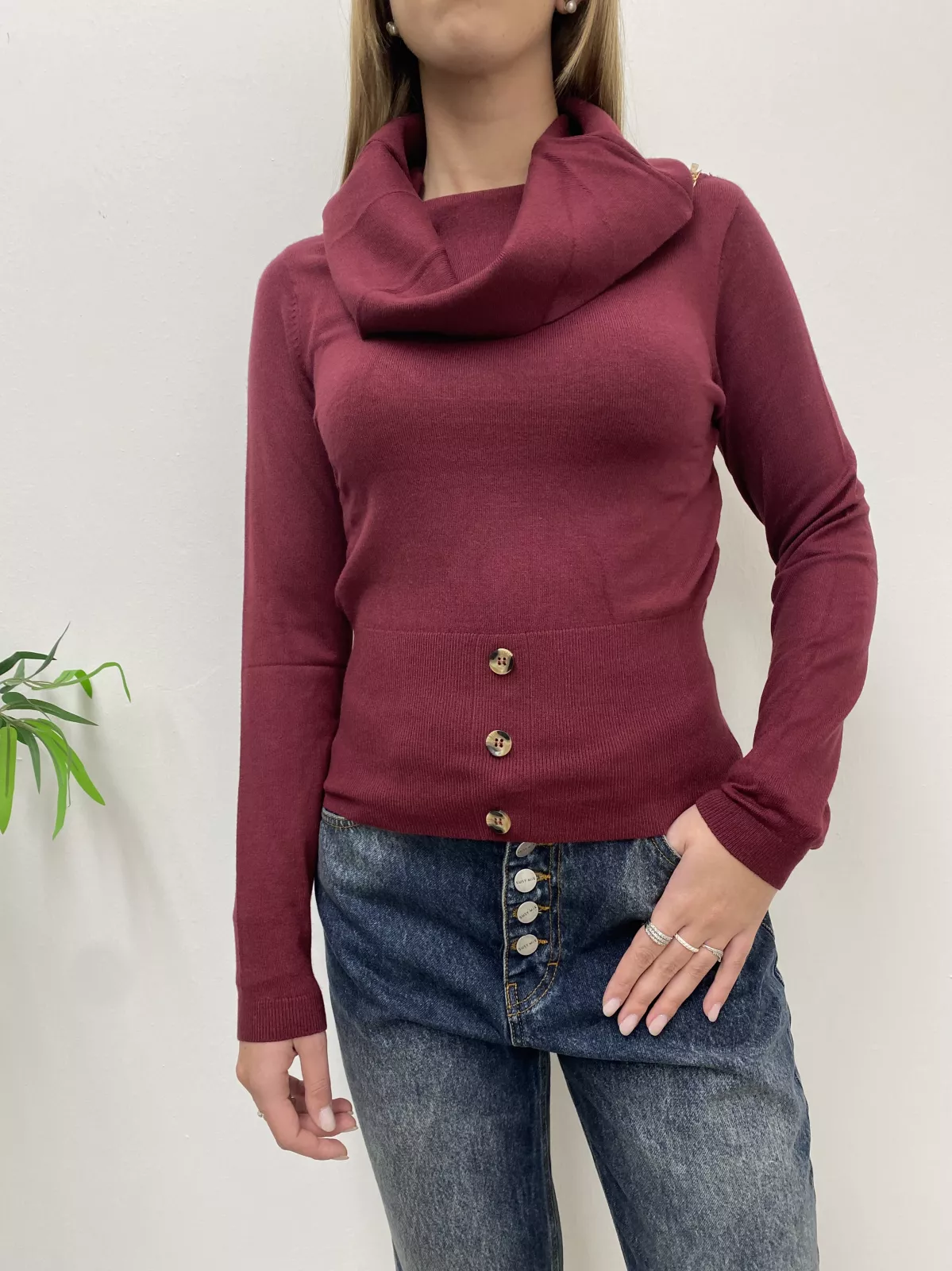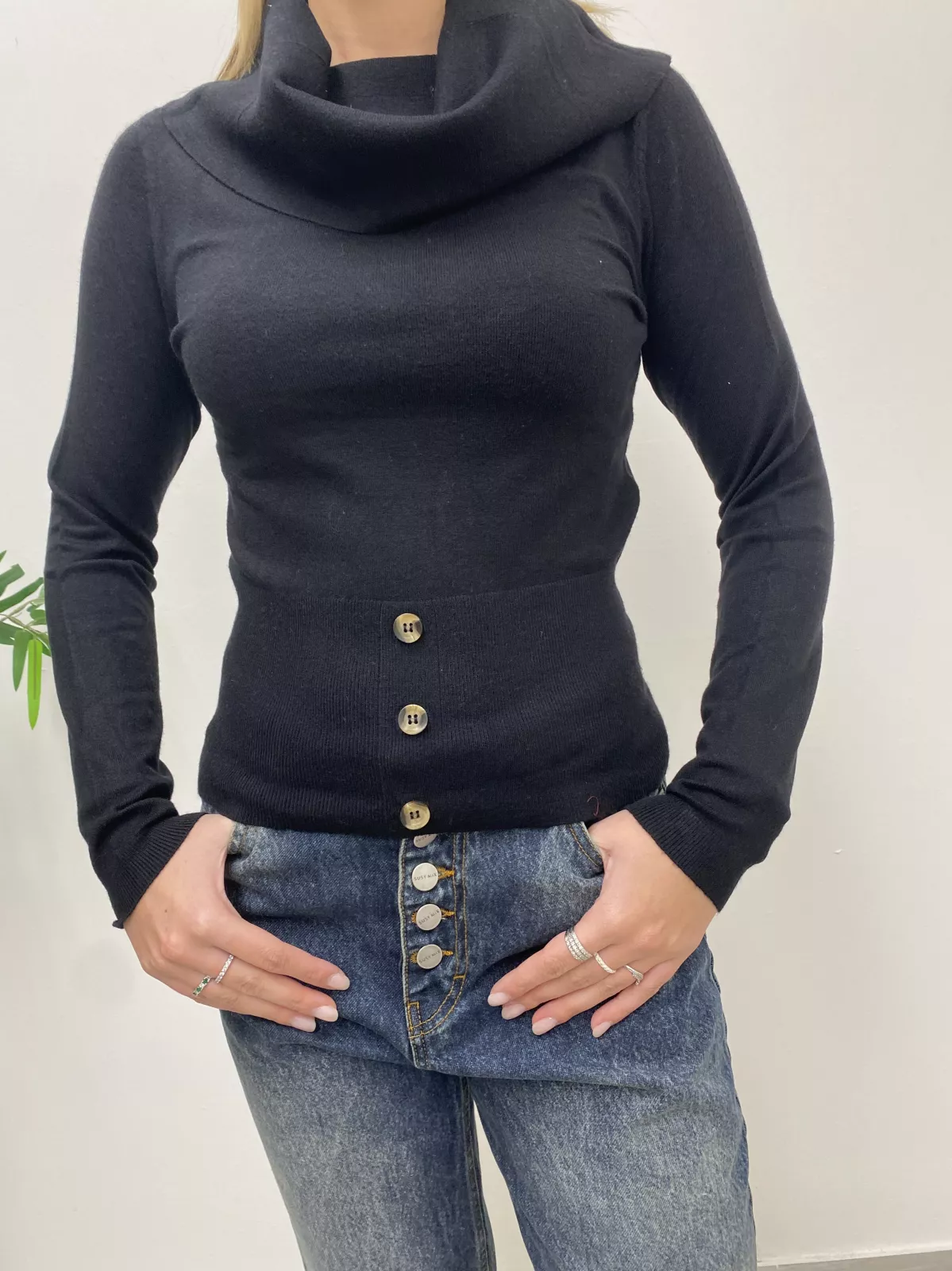 Maglione con collo alto e bottoni in fondo.
