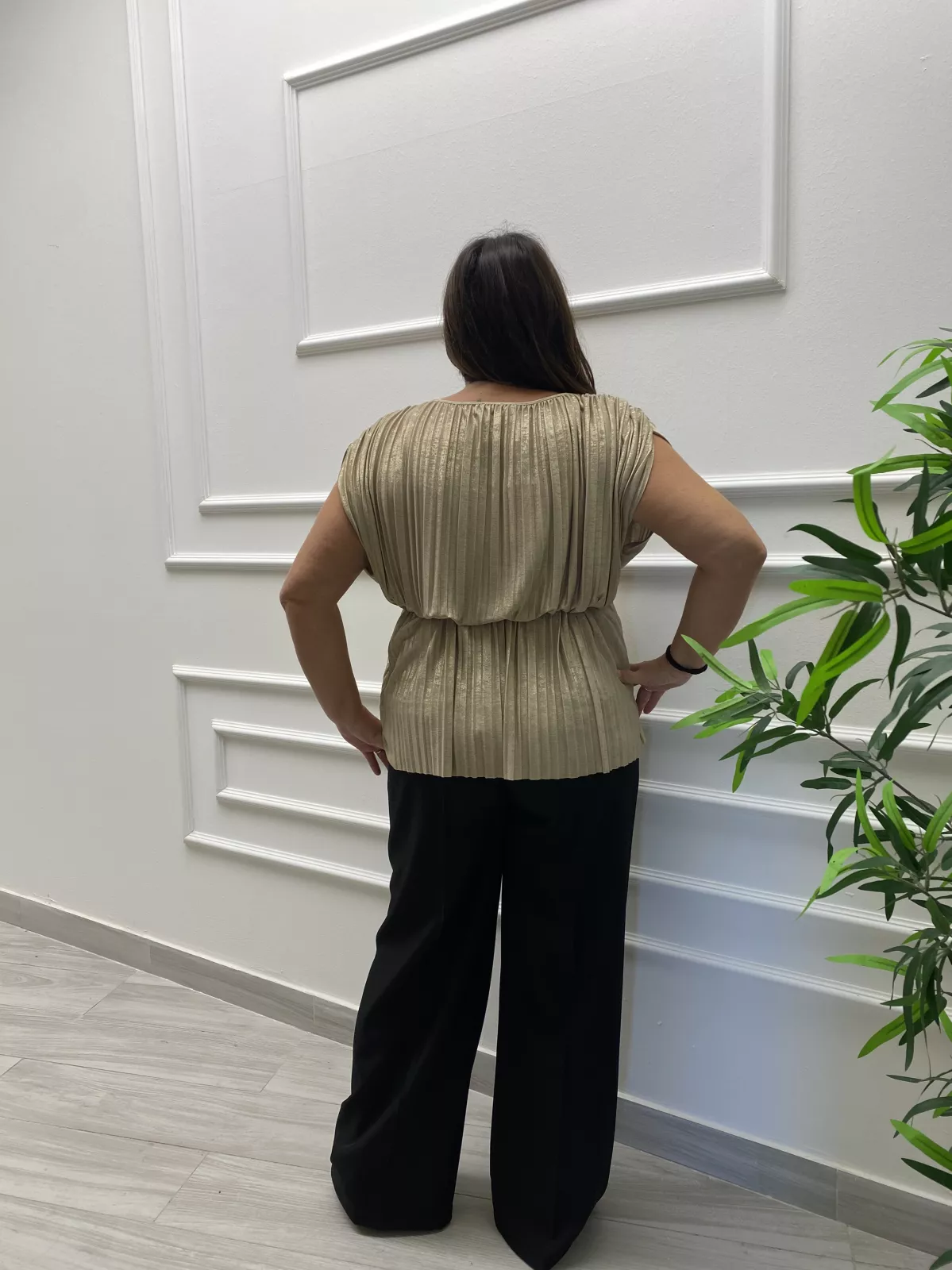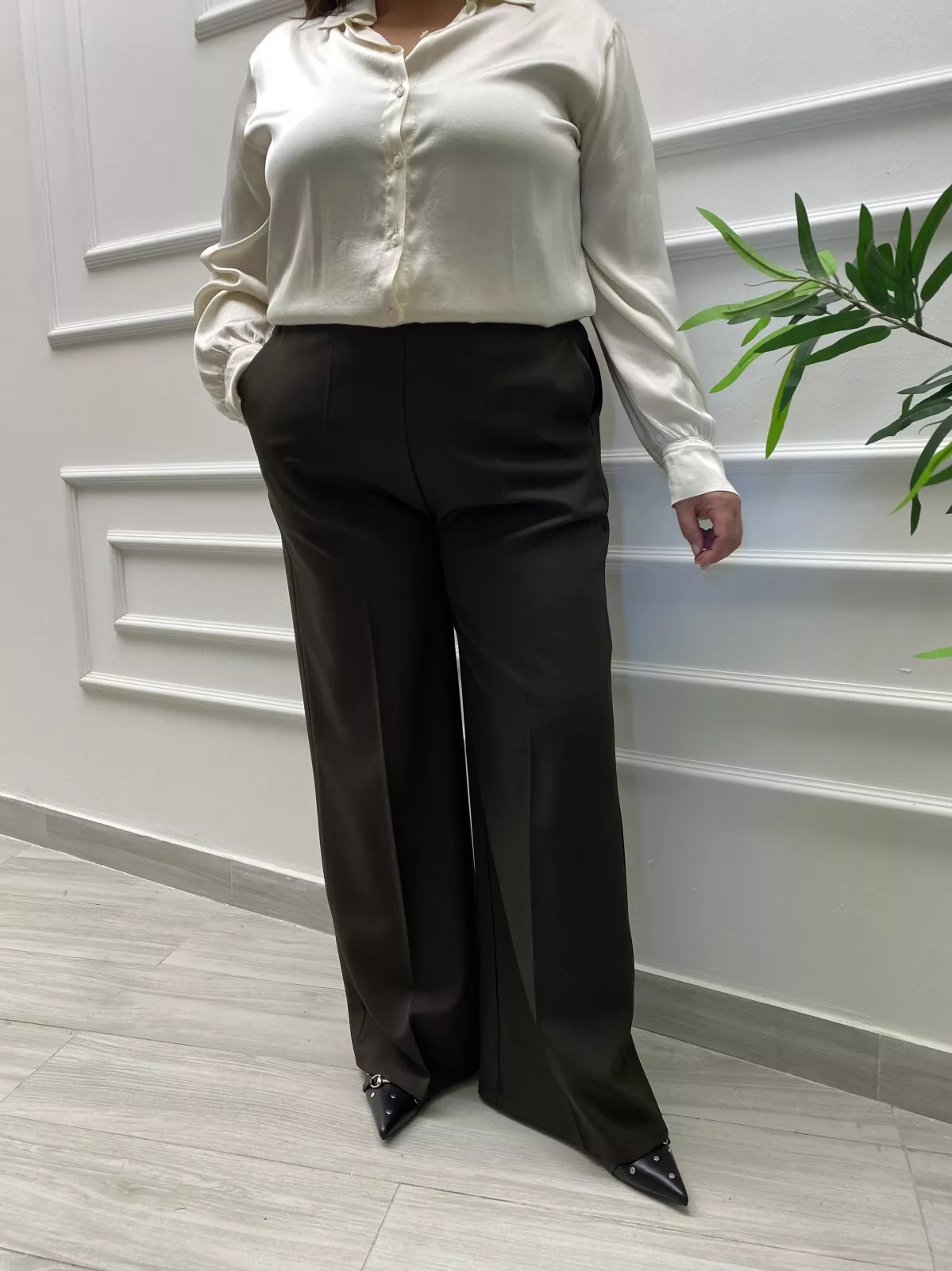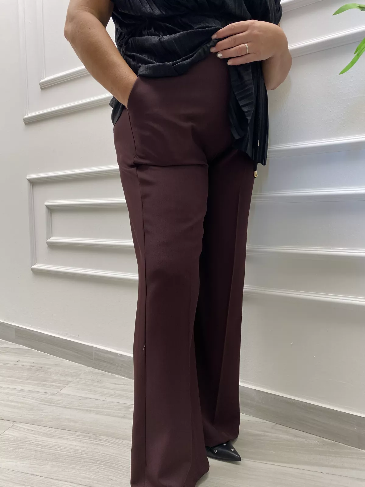 Pantalone lungo elasticizzato in vita con tasche e sul retro finte tasche