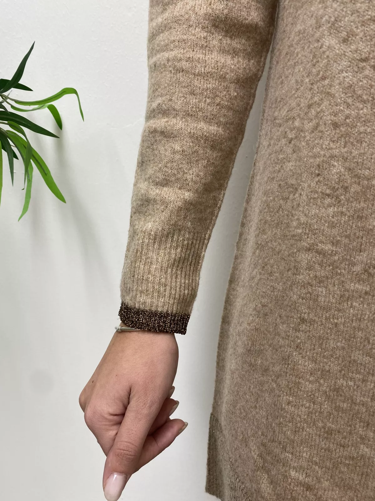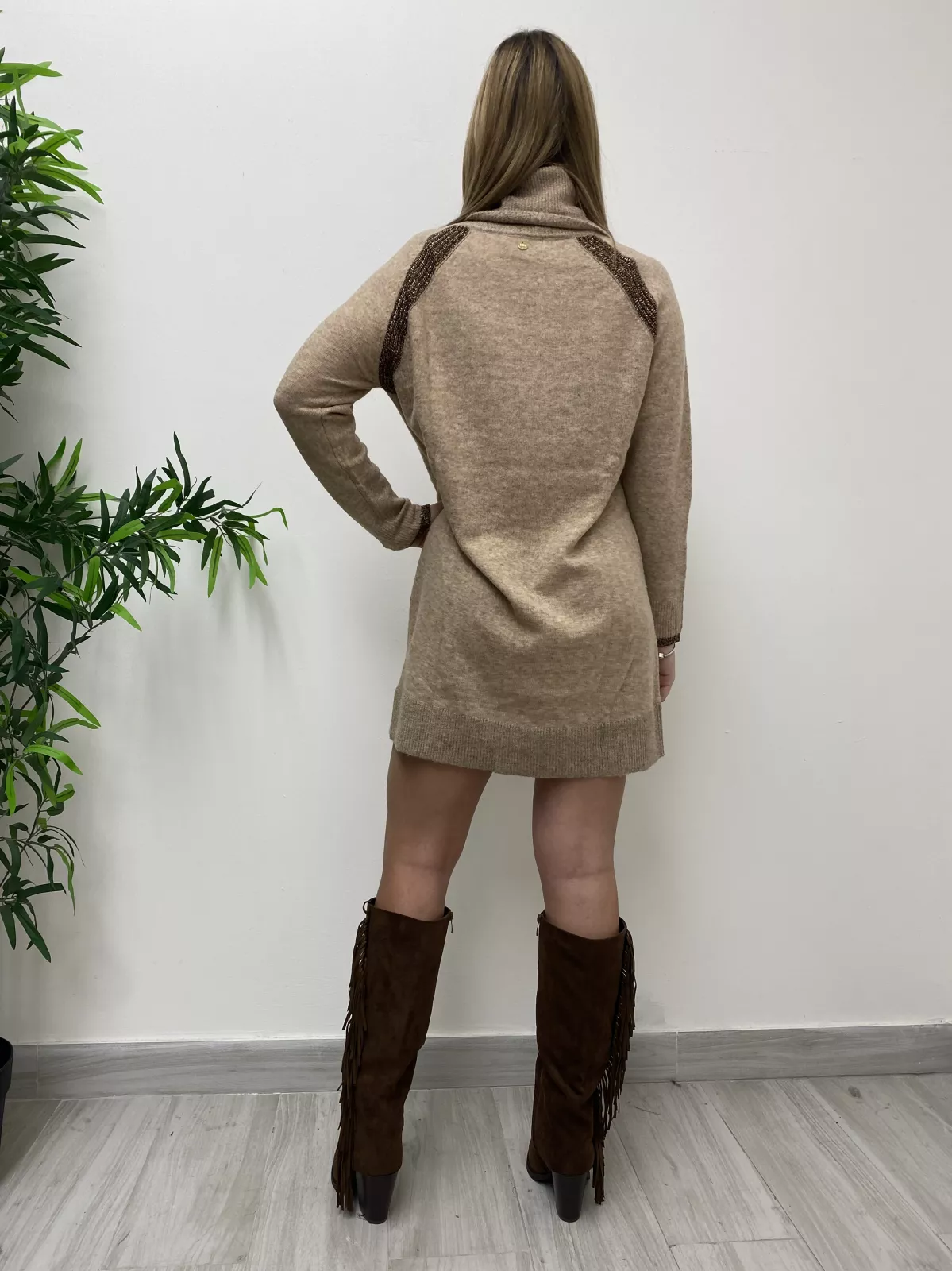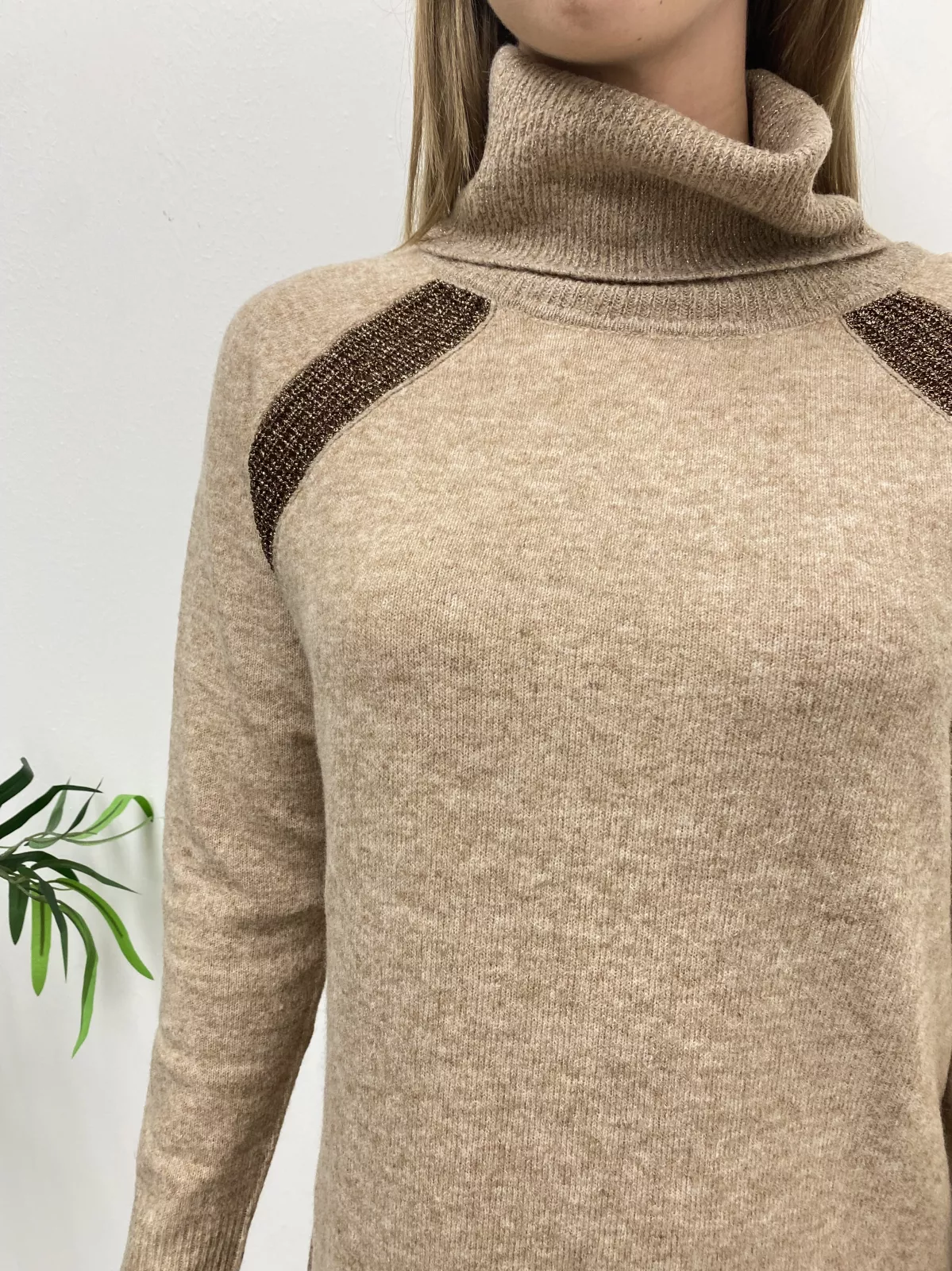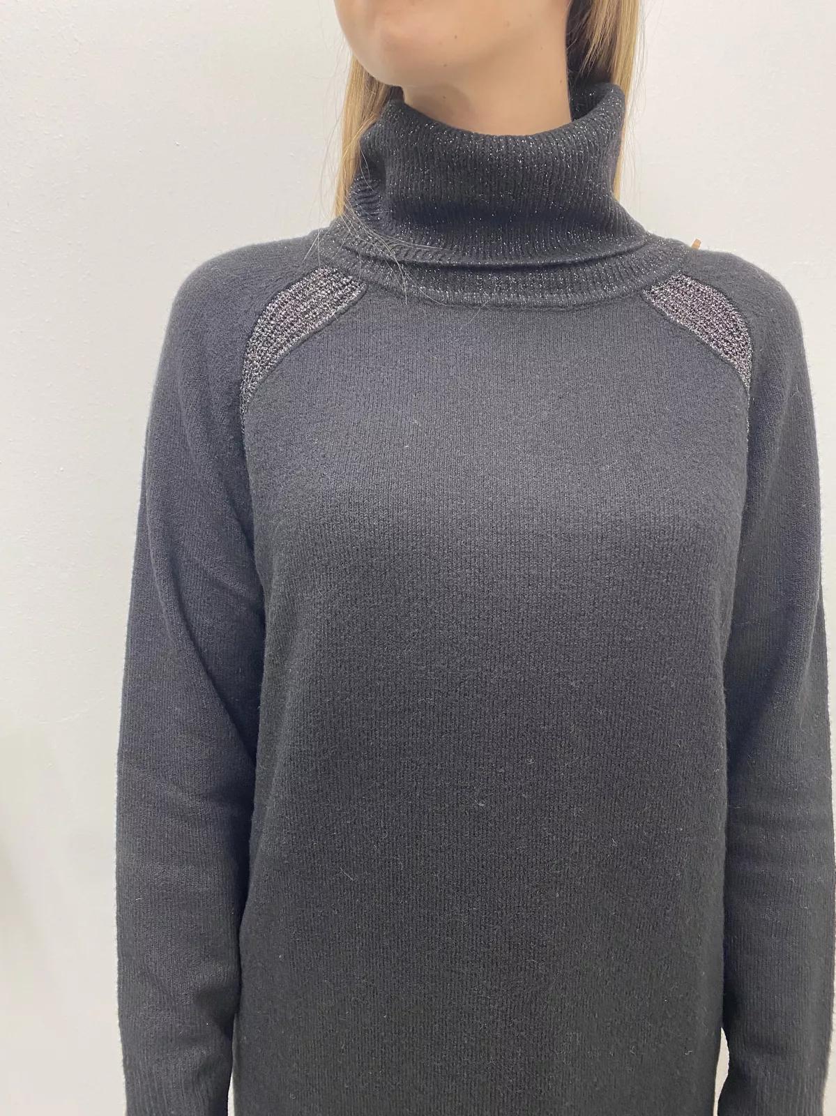 Abito in maglia con bordi lurex a collo alto.