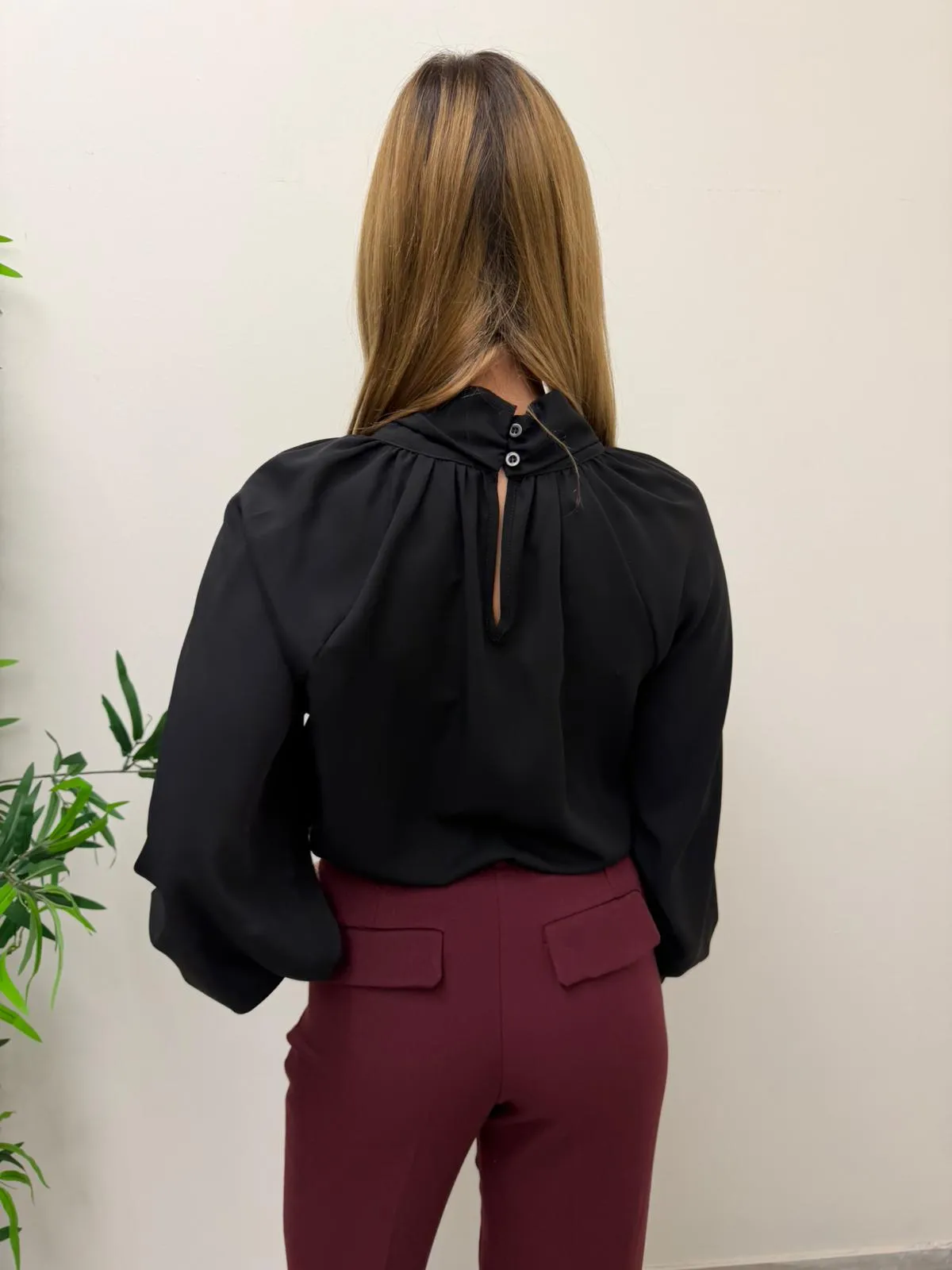 Camicia con maniche leggermente a sbuffo e bottoni dietro al colletto.