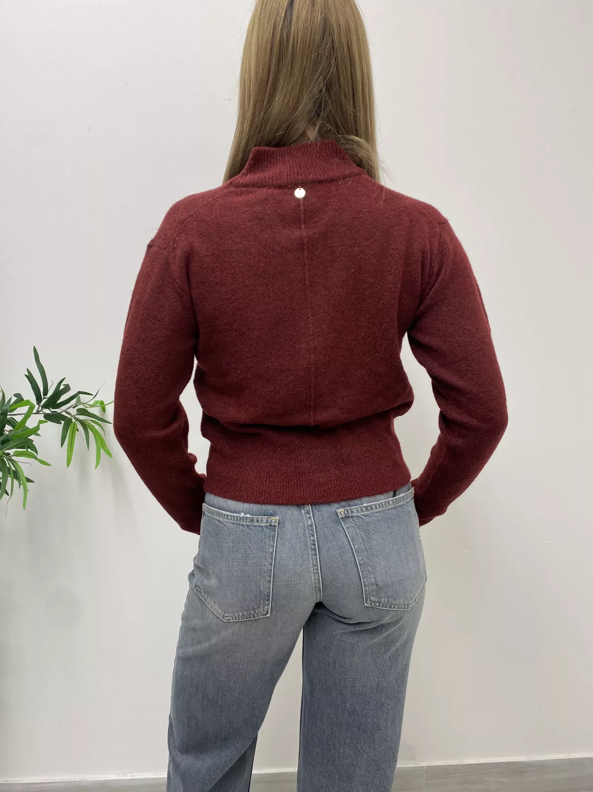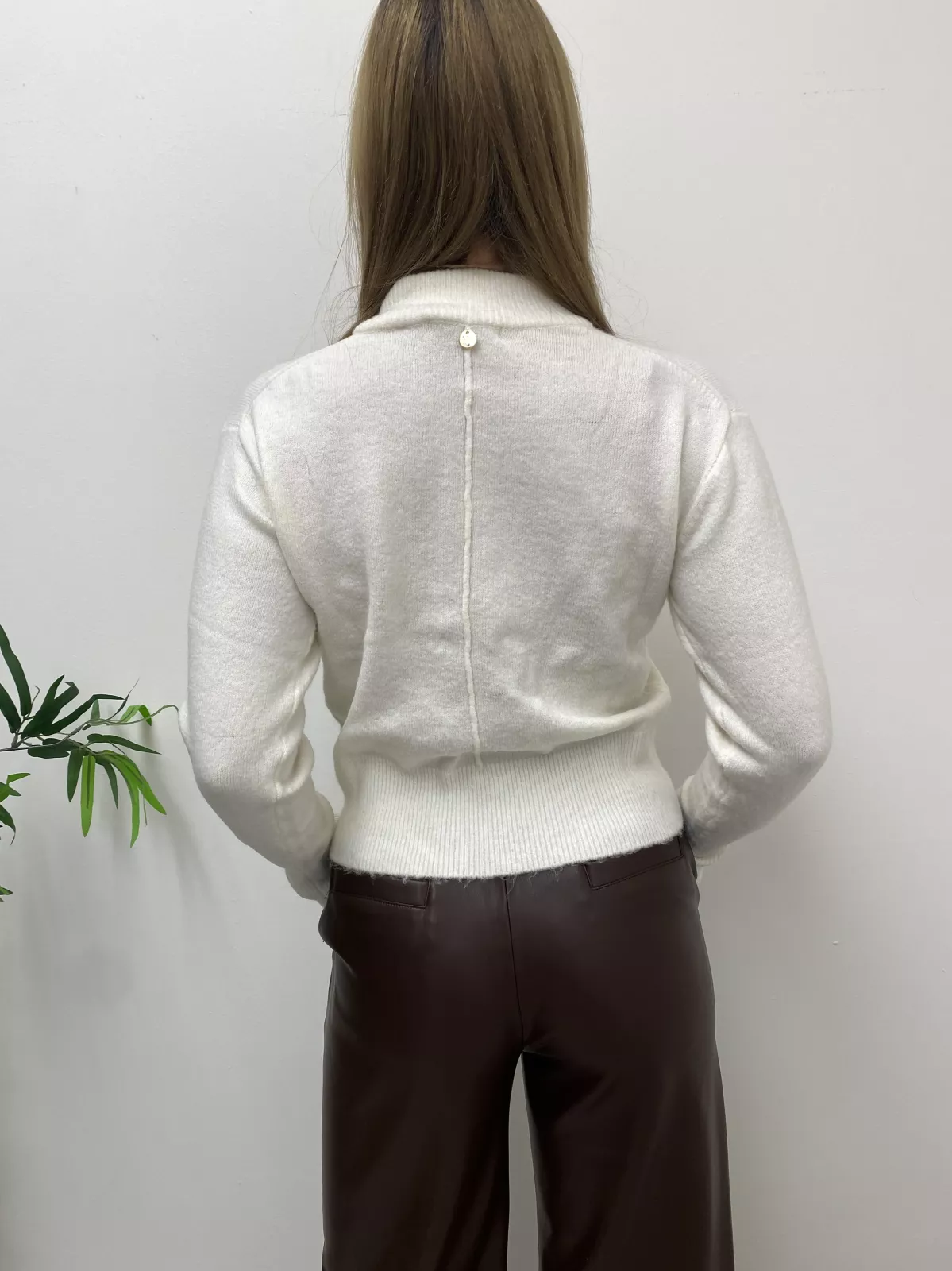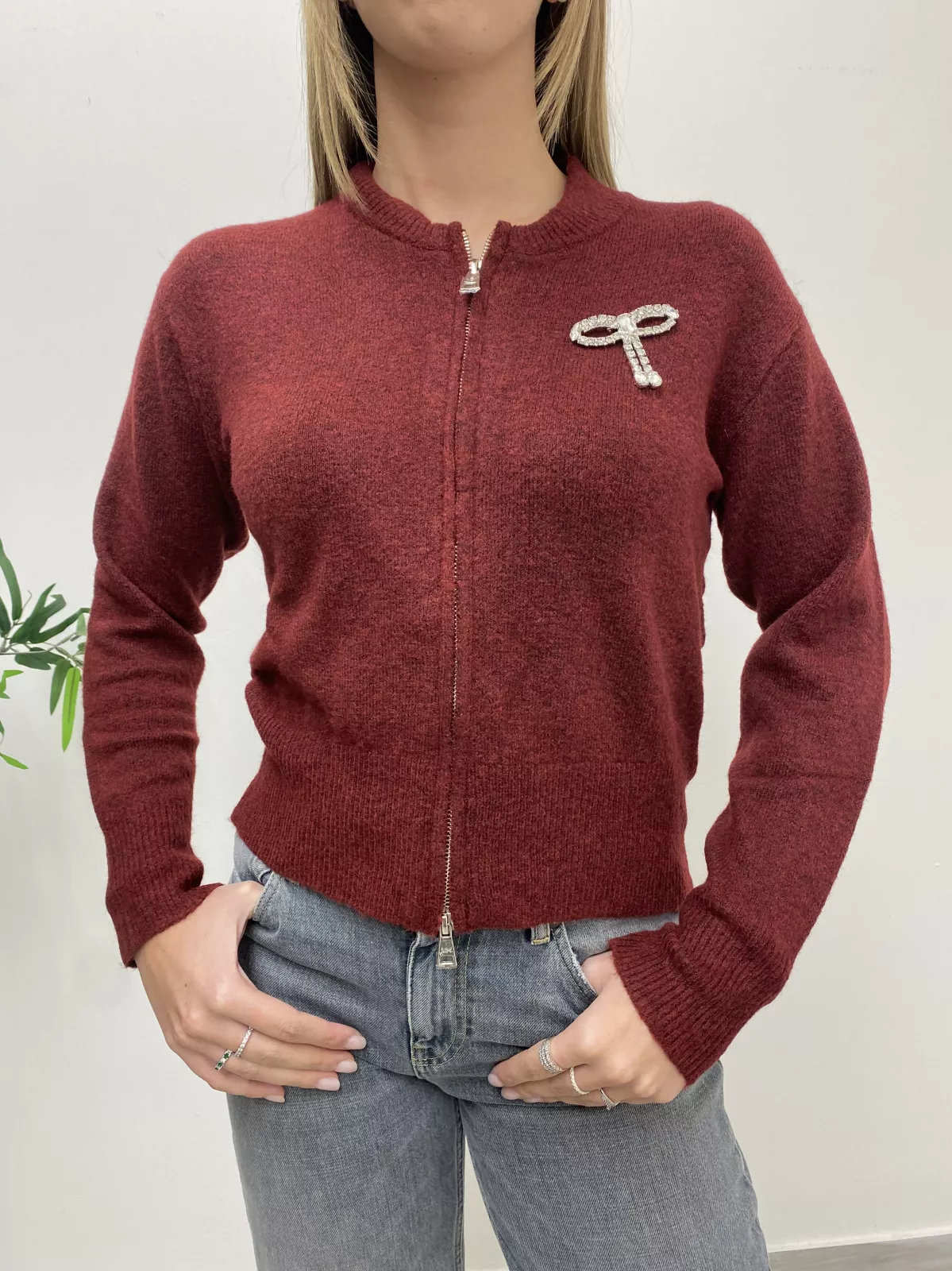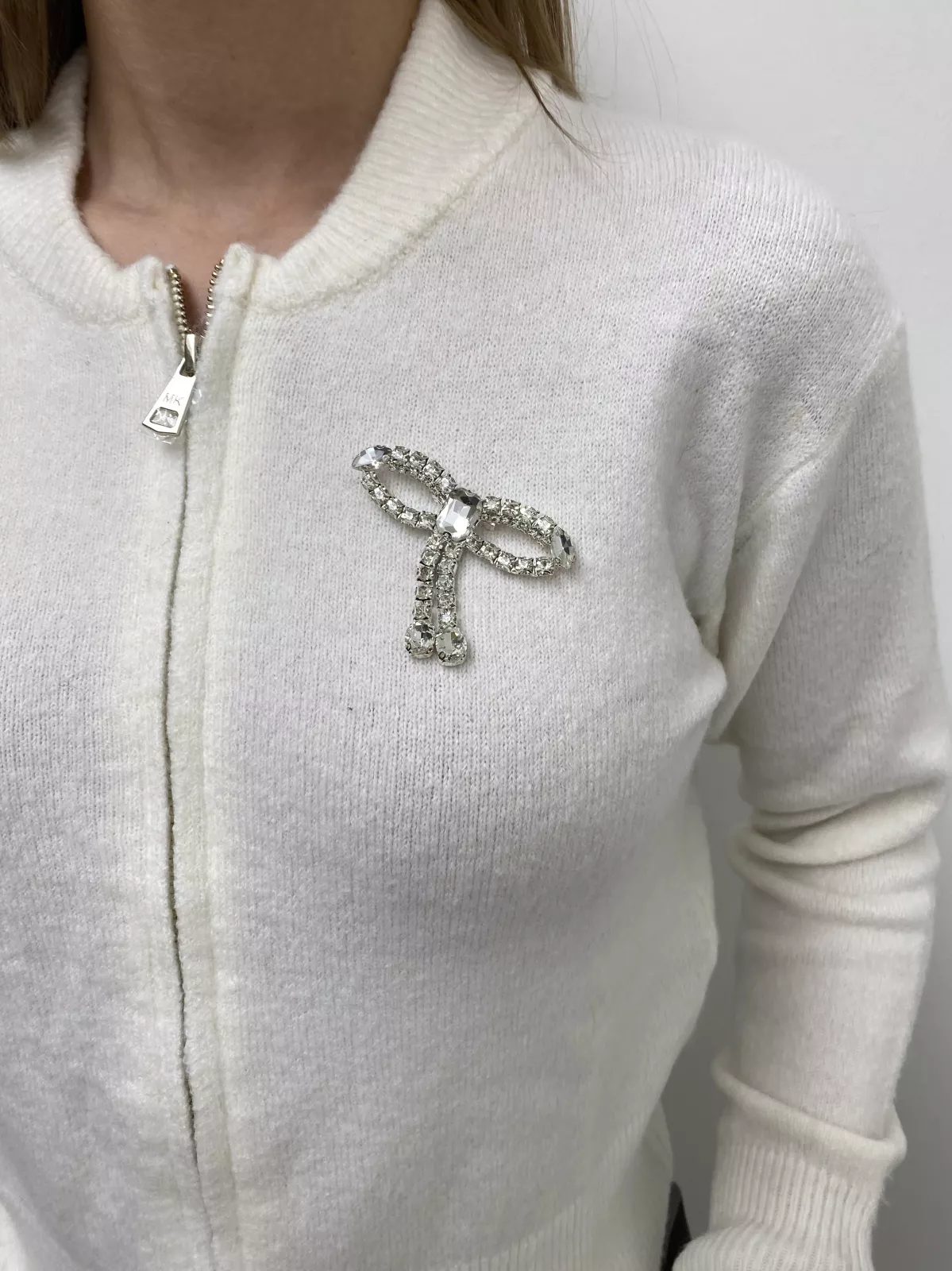 Maglione corto con zip, decorato con fiocco argento.