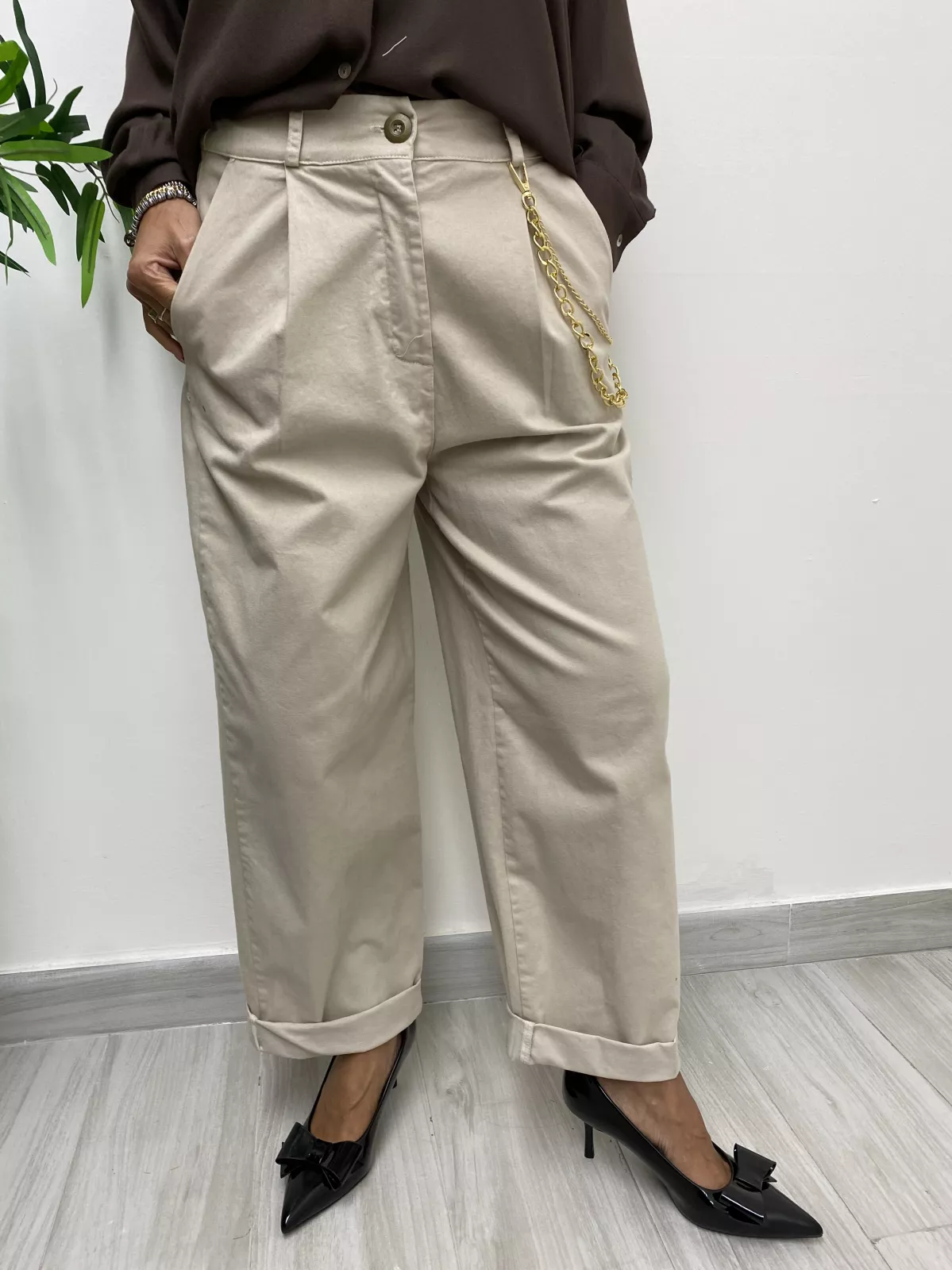Pantalone con catena oro sul fianco (catena removibile)